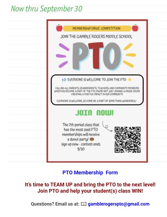 GRMS PTO is a volunteer run, non-profit organization made up of parents, teachers, administration, staff and business partners who are dedicated to making Gamble Rogers Middle School the BEST it can be!